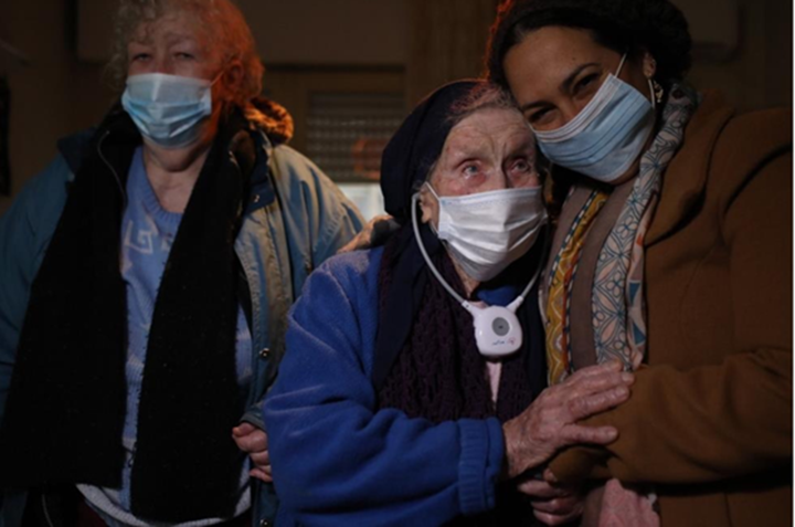 Shoshana, a 99-year-old woman who survived the horrors of the Auschwitz concentration camp, is one of the many vulnerable elderly Jews who rely on support for their basic needs. When Fellowship and United Hatzalah staff came to deliver food and a space heater to her, she said, “I can’t believe you came here in the cold and the snow to help us.” | Photo Credit: © 2021 IFCJ, photo by Avishag Shaar-Yashuv